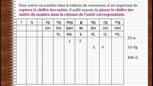 De nombreux cas font appel au tableau de conversion. Au verso, conversion des mesures d'aire. Pour l'utiliser, c'est le même principe que pour le tableau de conversion des unités simples, sauf qu'il faut entrer deux zéros par colonne, et non pas un seul: Toutes les tableaux de conversion.