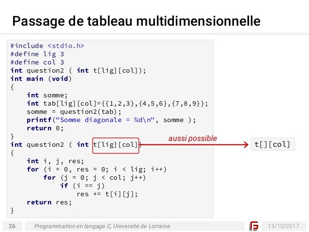 Le langage c++ propose deux types de structures : Ou alors il faut tricher, assigner la dernière valeur du tableau à null et compter les éléments c'est là toute la puissance des langages compilés, on a que les inf. Voici un tableau donnant les types de données en langage c F2school informatique déclarer tableau c, déclarer un tableau en c, exercice corrigé langage c tableaux, exercices corrigés sur les matrices en langage c.