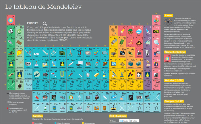 Aperçu. Start studying tableau de mendeleiv. Sous forme de tableau, elle regroupe et classe l'ensemble des éléments chimiques connus par numéro atomique croissant.
