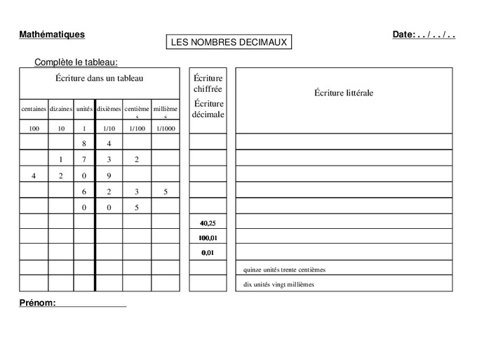 Pour seulement 13,90 € un fichier que vous avez le droit de photocopier quand vous connaissez le prix habituel des fichiers photocopiables. Tableau de numération nombres entiers ce2/cm1/cm2. Les fractions décimales les fractions décimales exercices écris ces fractions en lettres: Lire, écrire et décomposer les nombres décimaux pour comprendre ce que vaut dans notre système de numération, il existe 10 chiffres, de 0 à 9.
