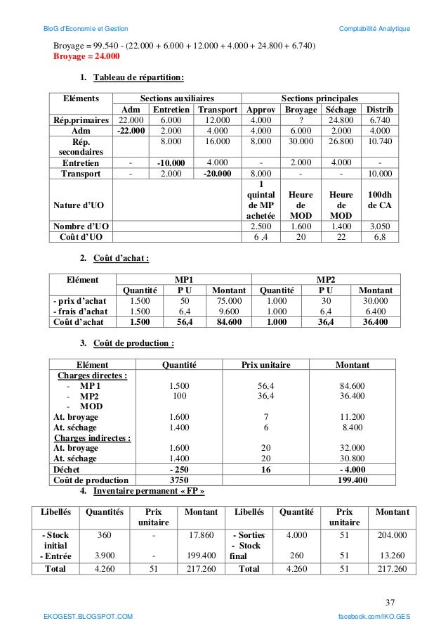 Exercice le tableau de répartition des charges indirectes comptabilité analytique s3 avec le solution, exercice corrigé comptabilité analytique s3.