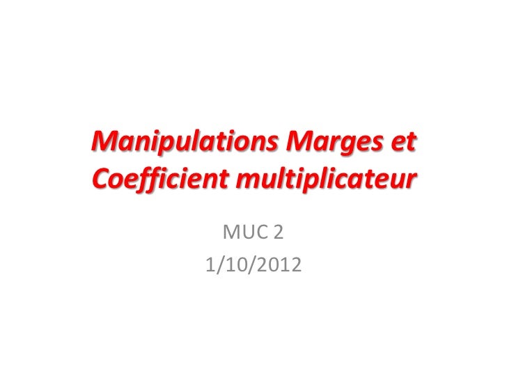 Le coefficient multiplicateur est le coefficient par lequel il faut multiplier le coût d'achat ht des marchandises (c'est à dire le prix réellement payé par l'entreprise car la tva. Barreau demande de calculer le coefficient multiplicateur de marge du magnétoscope entre le coût d'achat et le prix de vente ttc dans les deux cas (promotion et hors. Vous voulez 20% de marge sur le prix de vente, le coefficient de vente sera déterminé sur la base suivante