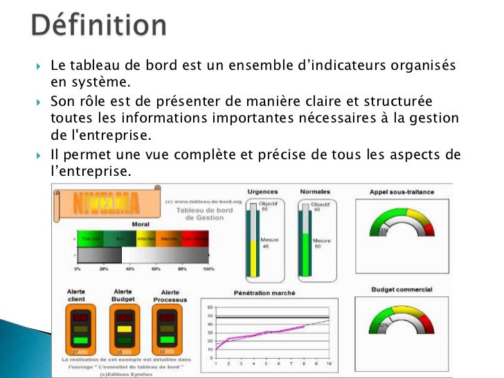 Un tableau de bord est un document qui reprend des éléments chiffrés et différents indicateurs synthétiques permettant d'établir un langage le tableau de bord est donc un outil de pilotage permettant au responsable d'une structure de mettre en place des actions correctives en fonction de. Le tableau de bord est un outil stratégique indispensable au pilotage des entreprises. La définition des finalités et des objectifs assignés au tableau de bord la logique d'enchaînement des tbd dans une entreprise l'identification et la mobilisation des acteurs doit faire l'objet d'une attention particulière la définition et le choix des critères et indicateurs pertinents quel est le nombre. Définition d'un tableau de bord.