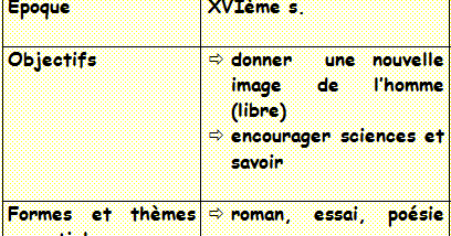 Un mouvement littéraire et culturel reflète toujours les changements à l'œuvre dans une société à un moment donné. Mouvements littéraires (mlle carlier) époque l'humanisme procédés d'écriture la méditation sur l'homme et sur soi le dialogue incessant du maître et de. (cette liste a été avant tout construite dans un souci pratique.