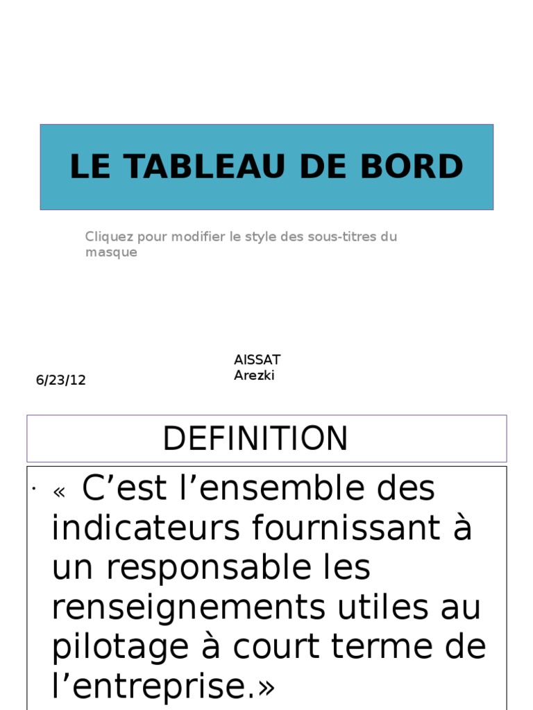 TOP12+ Définition Tableau De Bord
