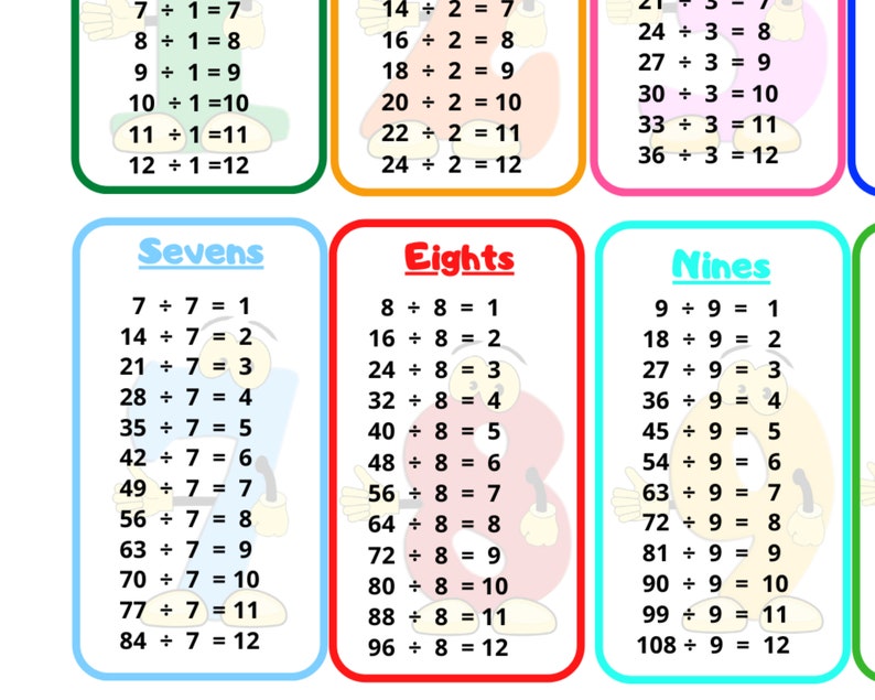Fond d'écran. Et les autres tables de division ? Vous pouvez même couper en morceaux individuels et faire.