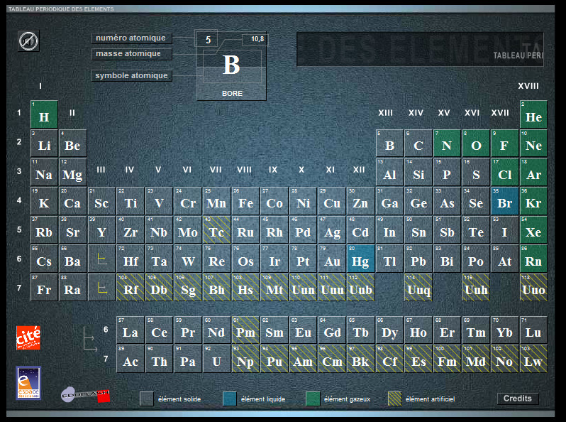 Visite guidée du tableau périodique, mieux connu sous le nom de mendeléev. Origine des noms (et des symboles) des éléments chimiques du tableau de mendeleïev. (chimie) tableau présentant la liste des éléments chimiques ordonnés par numéro atomique croissant et. Variations autour du tableau périodique.