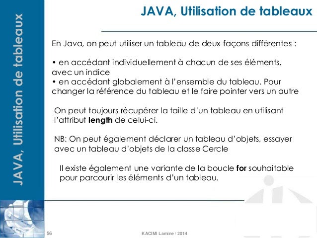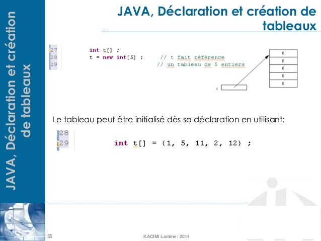 A declaration statement is used to declare a variable by specifying its data type and name. Sometimes you want to create an arraylist with values, just like you initialize t at the time of declaration, as shown below: Dans le langage java, les tableaux simples et dynamiques ont des caractéristiques différentes. L'allocation de la mémoire et donc l'obtention d'une référence pour accéder au tableau se fait en.