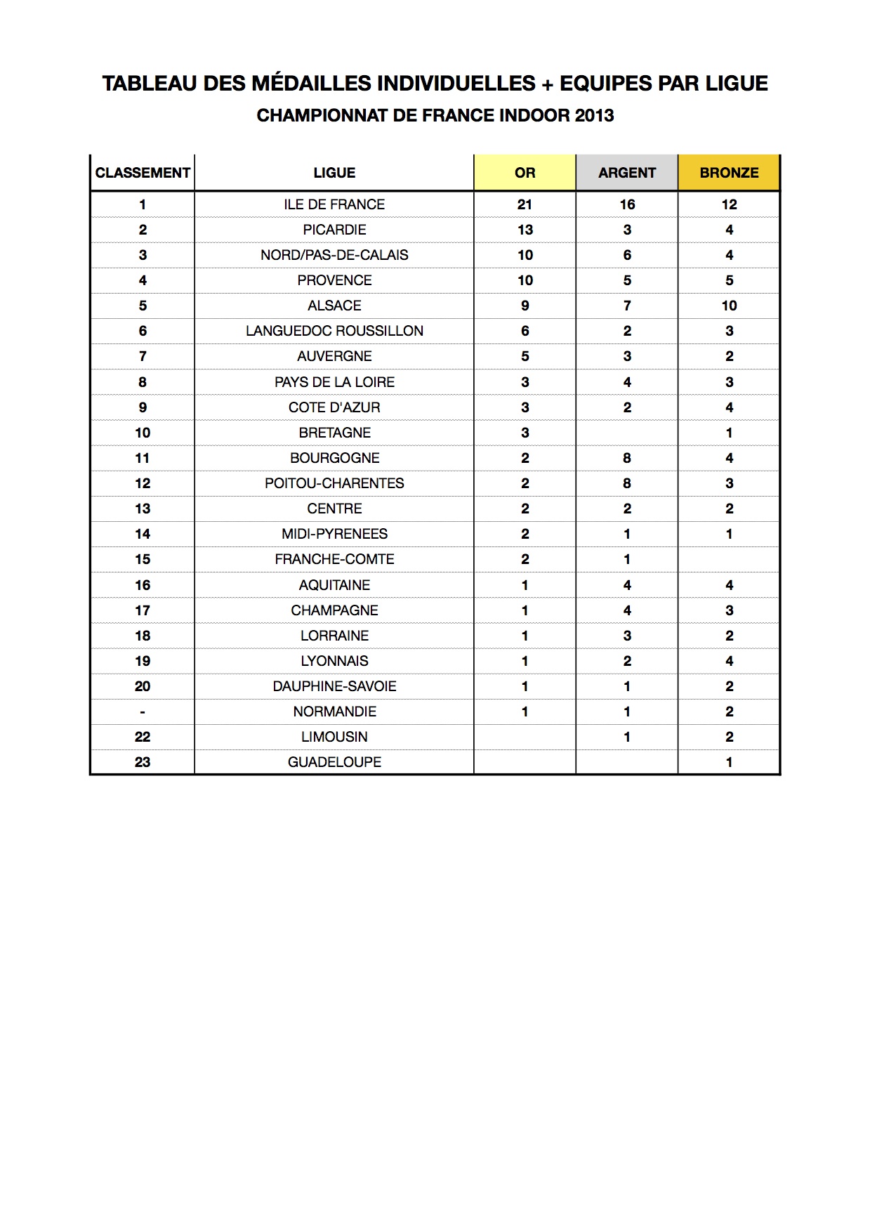 TOP50+ Tableau Des Medailles 2012